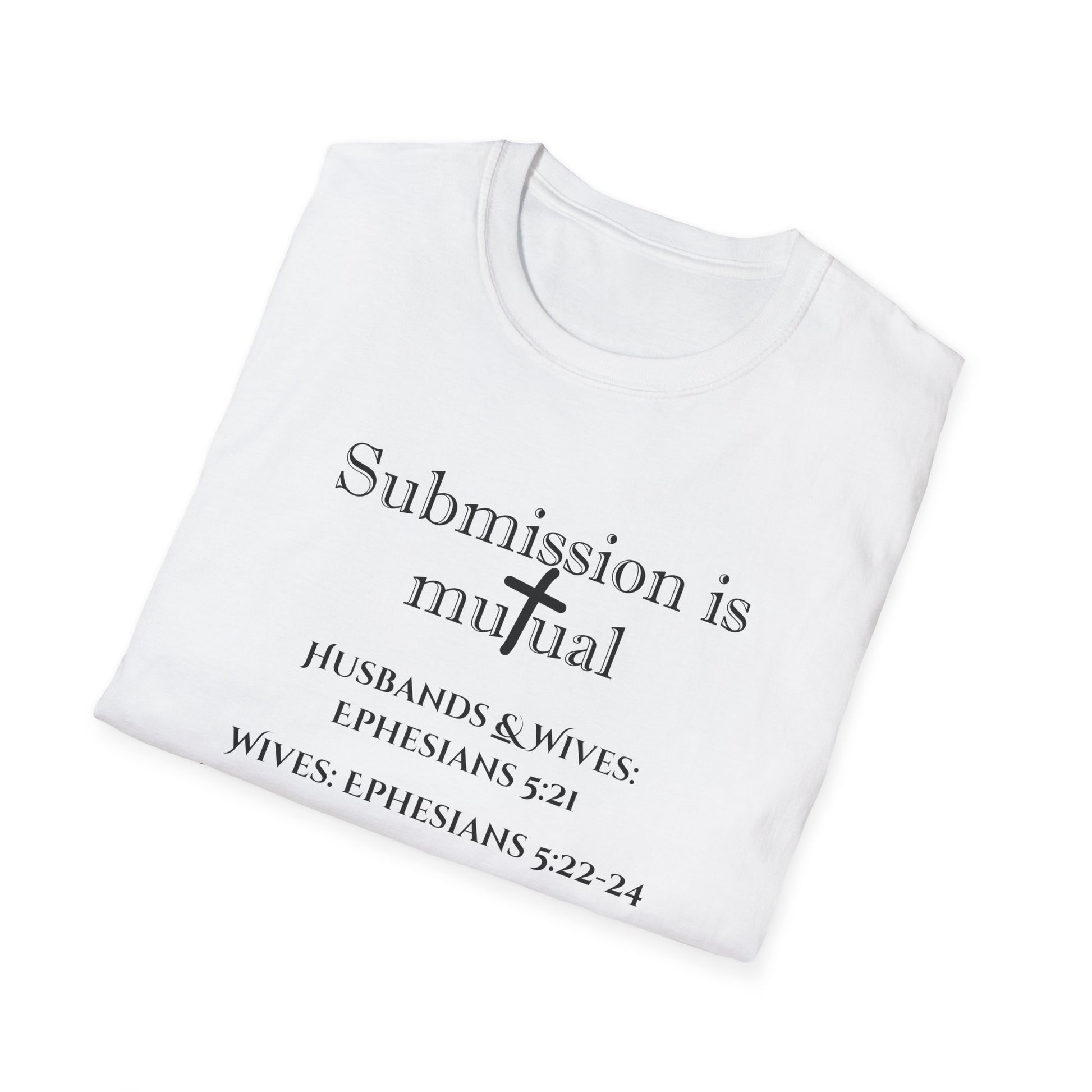 Experience the mutual bond of love and respect with our "Submission is Mutual" tee, inspired by Ephesians 5:21-33. Crafted for comfort and style, this tee embodies the essence of mutual submission. Made with soft 100% ring-spun cotton, it offers year-round bliss. Its classic fit and versatile design suit any occasion, while tear-away labels ensure added comfort. Embrace faith and fashion with ease.